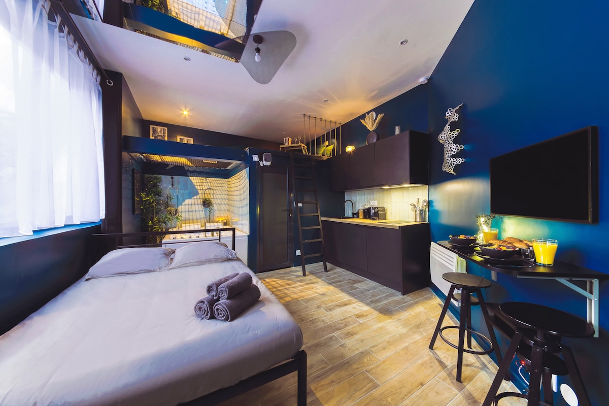 If you’re trying to hire an residence in France that’s cozy and outfitted with trendy facilities, look no additional. Located in Arcueil, in the suburbs of Paris, this studio provides all the pieces it’s worthwhile to unwind after a day of exploring town. Guests can stream their favourite reveals on the large video projector whereas lounging in the plush double mattress, stress-free in the Jacuzzi tub, or having fun with the netted lounge area on the mezzanine. This nicely-designed studio additionally contains a rain bathe and is just a 20-minute prepare experience from central Paris.